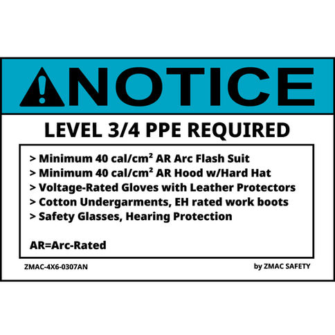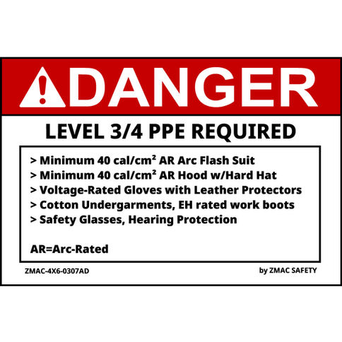 (10 Pack) Arc flash PPE Level 3/4 Required Label #0307, 4"X6" (4 Variations)