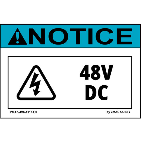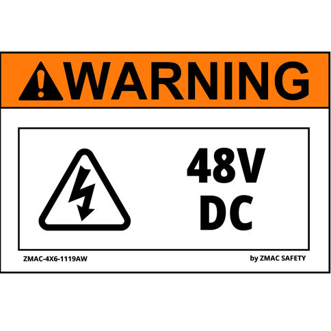(10 Pack) Volt Rating Label #1119, 48V DC, 4"X6" (4 Variations)