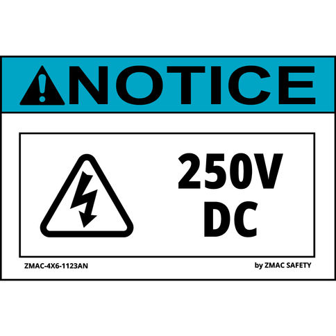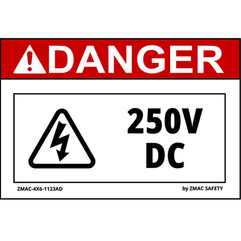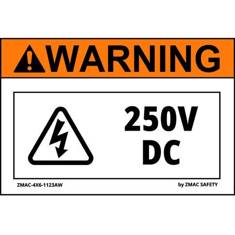 (10 Pack) Volt Rating Label #1123, 250V DC, 4"X6" (4 Variations)