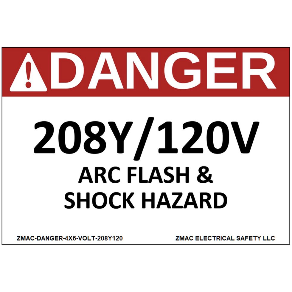Ten (10) 4"x6" Arc Flash Shock Hazard Voltage Label 208Y/120V (4) Variations